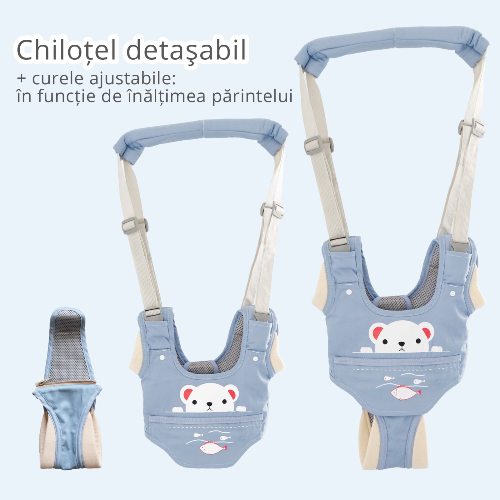 Fiind multifuncțional, hamul de copii destinat pentru mers se poate utiliza in două moduri, in funcție de necesitatea și de varsta celui mic: